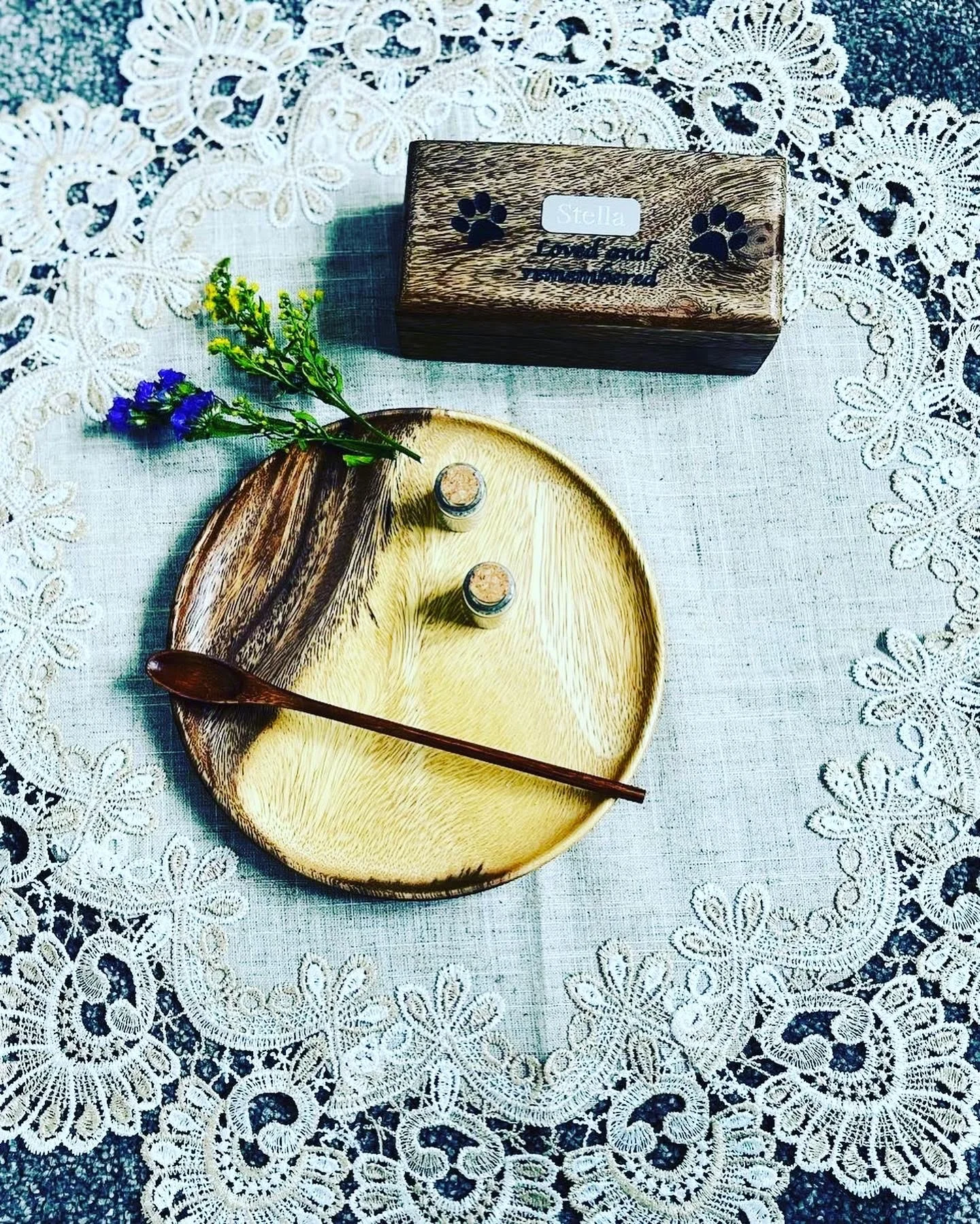 Lanson also offers a memorial art service, where she incorporates the cremation ashes of your lost loved ones into a piece of art, whether that be human or pet.